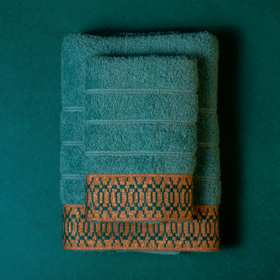 Σετ Βαμβακερές Χειροποίητες Πετσέτες Belford Gold Πετρόλ