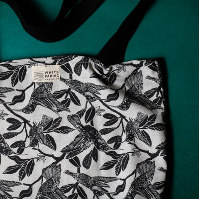 Χειροποίητη Βαμβακερή Τσάντα Birds Μαύρη