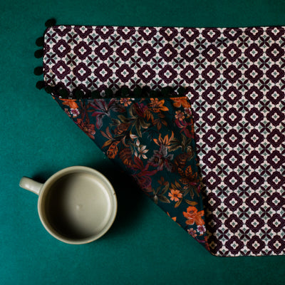 Βαμβακερή Χειροποίητη Πετσέτα Botanical Border Μπλε