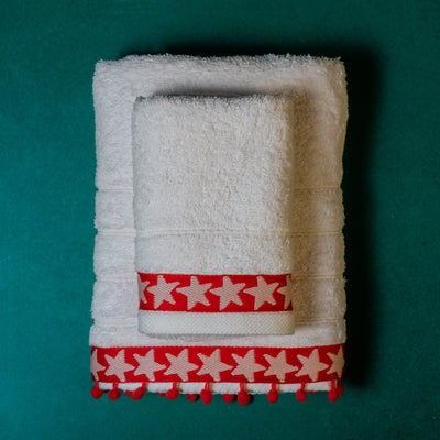Σετ Βαμβακερές Χειροποίητες Πετσέτες Red Star Λευκές