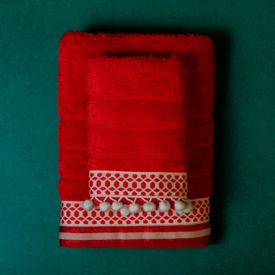 Σετ Βαμβακερές Χειροποίητες Πετσέτες Red Pinched Κόκκινες