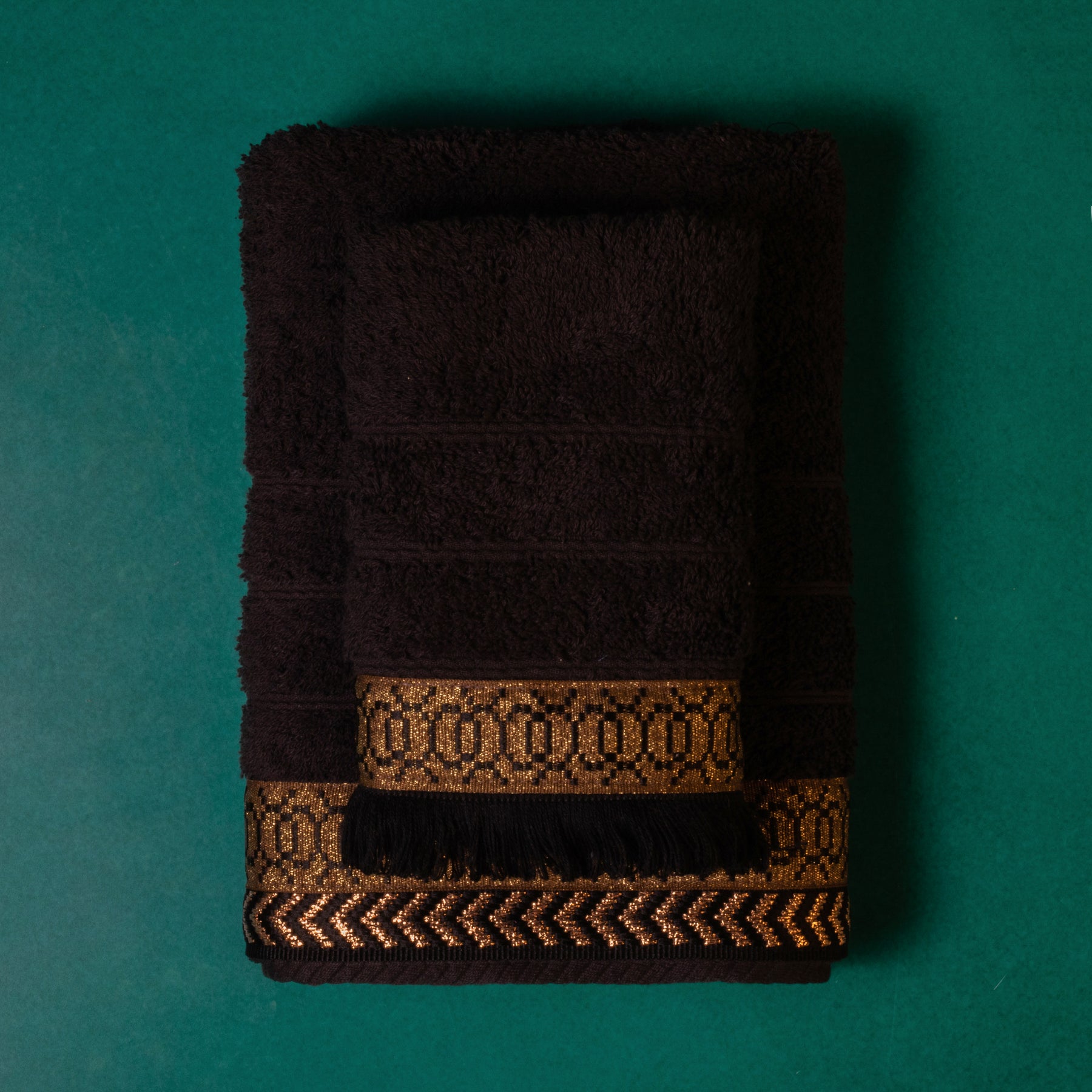 Σετ Βαμβακερές Χειροποίητες Πετσέτες Golf Leaf Μαύρες