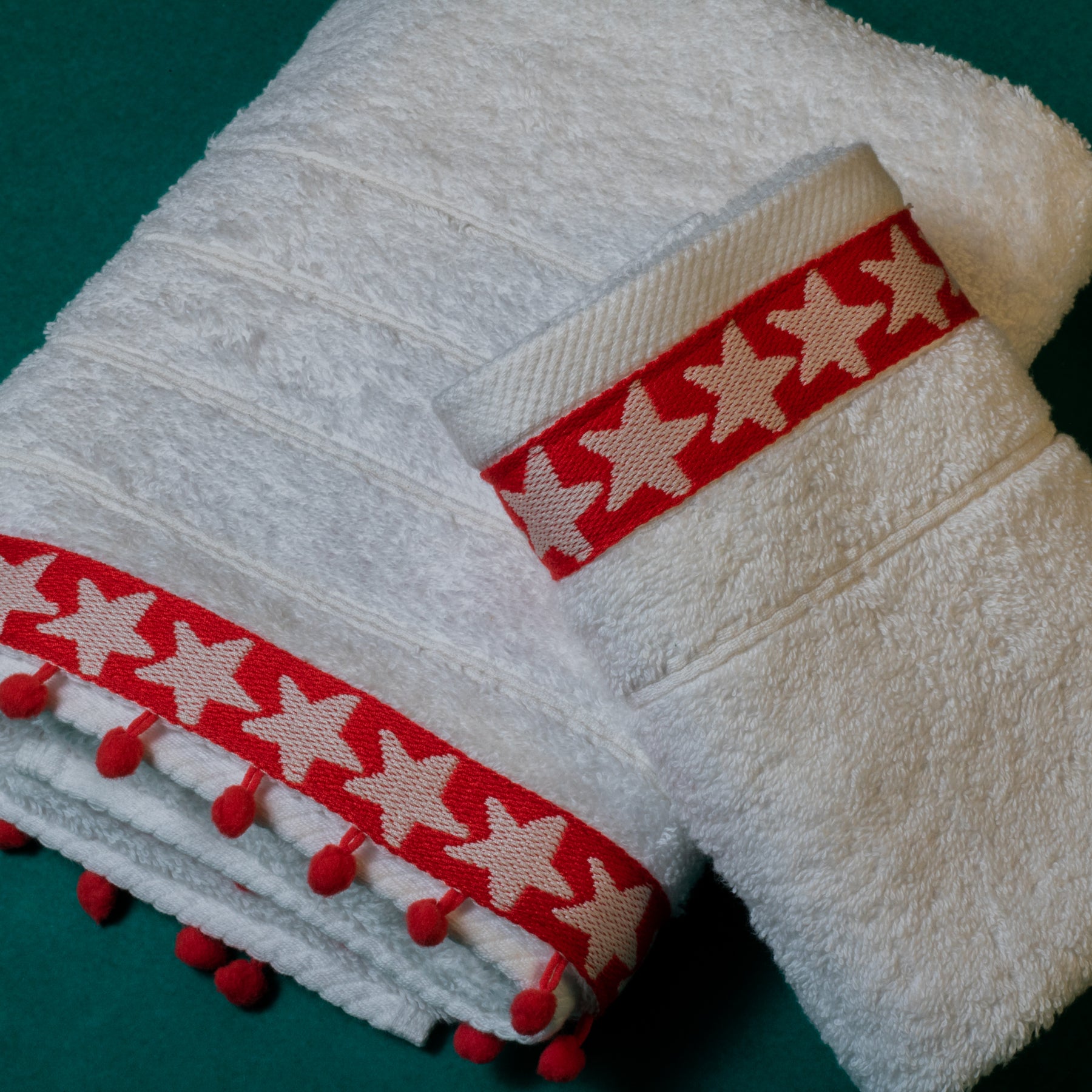 Σετ Βαμβακερές Χειροποίητες Πετσέτες Red Star Λευκές